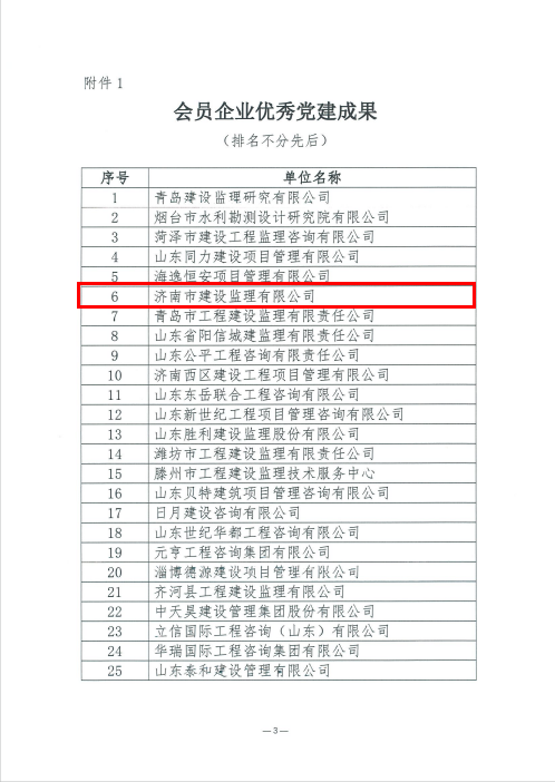 喜報(bào)!濟(jì)南監(jiān)理榮獲山東省建設(shè)監(jiān)理與咨詢協(xié)會(huì)“會(huì)員優(yōu)秀企業(yè)黨建成果”及“優(yōu)秀黨員典型案例”通報(bào)表揚(yáng)